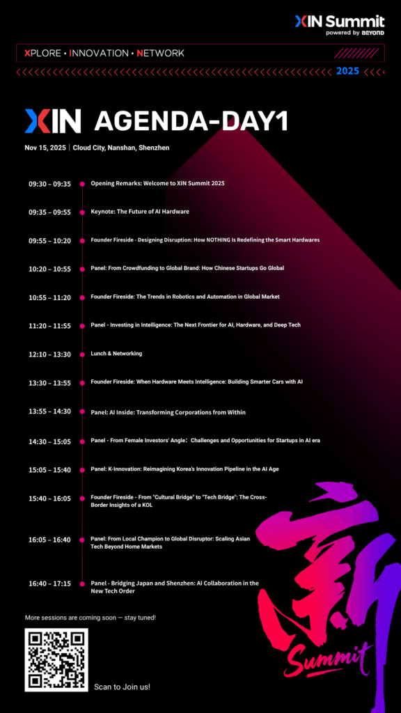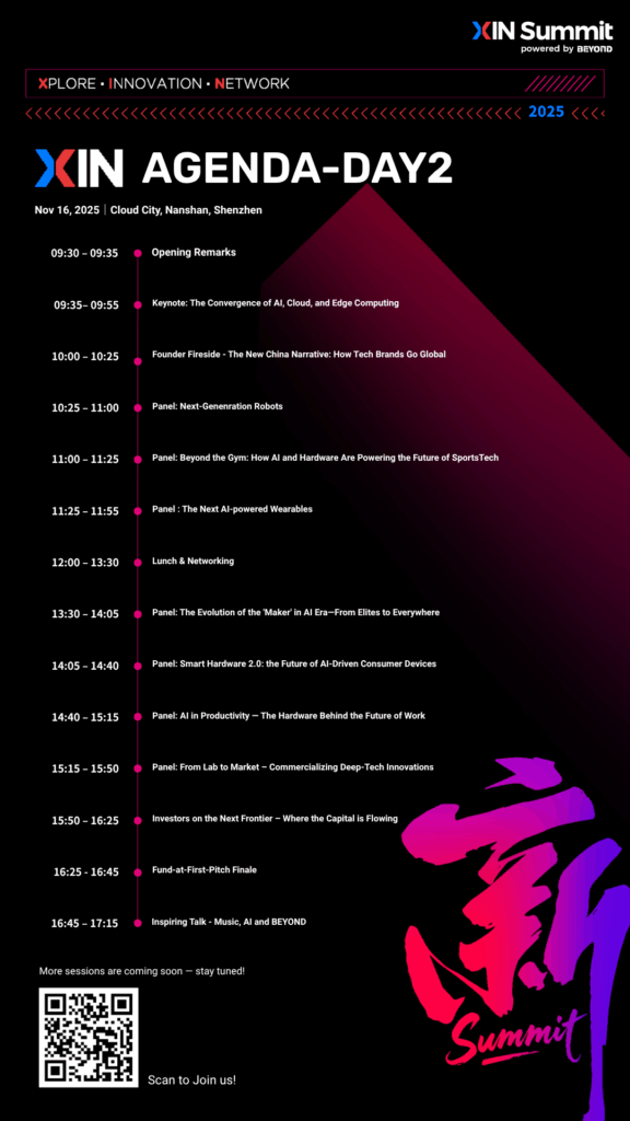 Organized by BEYOND Expo, Asia’s largest technology and innovation ecosystem event, the XIN Summit — a tech forum dedicated to intelligent hardware and frontier innovation — will take place on November 15–16, 2025, at Cloud City, Nanshan District, Shenzhen.